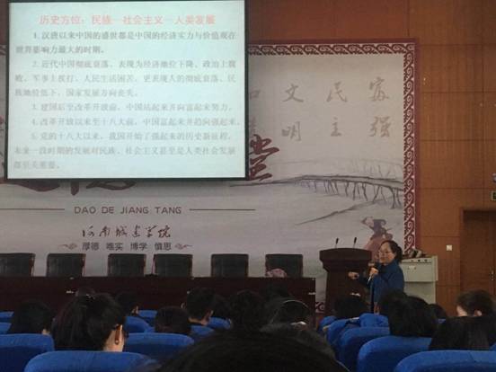 白燕用翔实的资料、生动的事例,以其扎实的理论功底,丰富的党建工作经验,围绕党的十八大以来、特别是进入新时代以来中国特色社会主义理论的发展轨迹及其理论逻辑,对十九大精神进行了全方位阐释。她认为,党的十九大是一次总结过去、研判现在、规划未来、承前启后、继往开来的盛会。其最大的特点是“新”,主要体现在“新成就、新时代、新思想、新目标、新部署和新要求”。她指出,党的十九大对于我国已经处于中国特色社会主义新时代的判断的依据就是建立在从改革开放之初以来,我们党发出了走自己的路、建设中国特色社会主义的伟大号召与改革开放的伟大实践、尤其是党的十八大以来我国经济社会的发展,在我们党团结带领全国各族人民不懈奋斗,推动我国经济实力、科技实力、国防实力、综合国力进入世界前列,推动我国国际地位实现前所未有的提升,党的面貌、国家的面貌、人民的面貌、军队的面貌、中华民族的面貌发生了前所未有的变化和取得了令世人瞩目和震惊的发展成就,中华民族正以崭新姿态屹立于世界的东方等一系列理论与实践的基础上的。进而她指出,十九大做出的一个新判断就是中国特色社会主义进入了新时代、一个新理论就是将习近平新时代中国特色社会主义思想写进了党章、一个新方略就是新时代中国特色社会主义发展总方略。