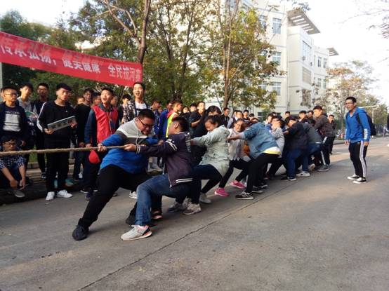 在此次比赛中,员工以班为单位,共有7支参赛队伍,每支队伍由10位男生5位女生组成。所有比赛实行3局2胜制, 比赛分三轮,前两轮均实行淘汰制晋级方式,第三轮采用循环制,决出第1、2、3名。比赛前,运动员们的神经就像绷紧的绳子一样,毫不懈怠。当裁判吹响哨子吹响的片刻,运动员们突然发力,男生个个都涨得面红耳赤,青筋爆粗;女生也毫不示弱,放下了平时的淑女风范,使尽浑身力气。恨不得抓起绳子跟员工一起努力!周围观众都热情高涨,为自己班加油助威。加油声,呐喊声此起彼伏,震耳欲聋,飘荡在教学楼之间,比赛场面真可谓热闹非凡,相当震撼。