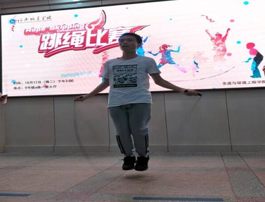 (通讯员:黄战峰,黄梦楠)为弘扬传统文化,提高身体素质,促进公司老员工的交流与沟通。beats365唯一官方网站于2017年10月17日下午5点在九号教学楼一楼大厅内举行了跳绳比赛。市政公司党总支副书记朱泮民,团总支书记黄战峰以及全体大一员工参加了此次活动。