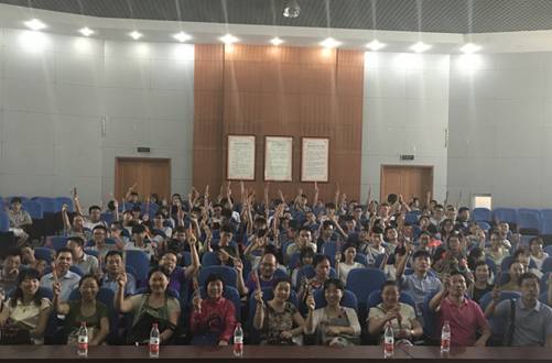 讲堂在全体到场师生诵读《孟子·离娄下》中拉开帷幕,主持人带领全场老师向自己发问:“教学过程中是否以生为本”、“日常生活中是否做到助人为乐”和“日常教学中是否践行了社会主义核心价值观”,全体老师闭目沉思60秒,全场肃然。学模范环节,大家一同学习了河南大学最美教师张晓辉的感人事迹,张老师九年时间资助2000名贫困儿童,为贫困学子撑起一片天,生动展示了榜样的品格和道德的力量。看完感人事迹短片,郭一飞经理结合自身教书经历阐述了对 “道”和“德”二字的理解,并要求员工在日常学习和生活中做到“嘴勤”、“眼勤”和“手勤”,不断提高自身道德修养,做一个道德高尚的人,对家庭和社会有用的人。诗咏传诵部分,四位同学深情朗诵《尊师颂》,表达了对老师们辛勤付出的感恩之情。身边人说身边事,身边人说自己事,公司员工刘学亮救落水小男孩的故事也被传为美谈。发善心环节,大一员工李美保同学结合自己受伤及被救助的经历,表达了公司、公司领导老师和同学践行大爱精神的感激之情;田长勋副经理结合自己切身经历,讲述自己以生为本,践行爱心服务工作法,关爱帮助员工,以心换心,同样也收获的员工对老师发自内心的尊敬;陈松涛书记结合自身的工作经历,要求老师们能做的“尊重员工”、“关爱员工”和“相信员工”,不但要教好书,更好育好人,真正做到“以生为本,德艺双馨”。