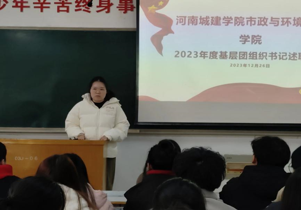 为深入贯彻落实团中央《关于印发〈基层团组织书记述职评议考核暂行办法〉的通知》精神和全面从严治团的要求,最大限度地发掘能力突出、素质过硬、充满活力的基层团支部和团干部。根据校团委和环政公司党委工作安排部署,12月26日下午,公司在9号楼A406教室召开2023年度基层团组织书记述职评议会。公司团学办全体辅导员以及各班团支书参加此次会议。