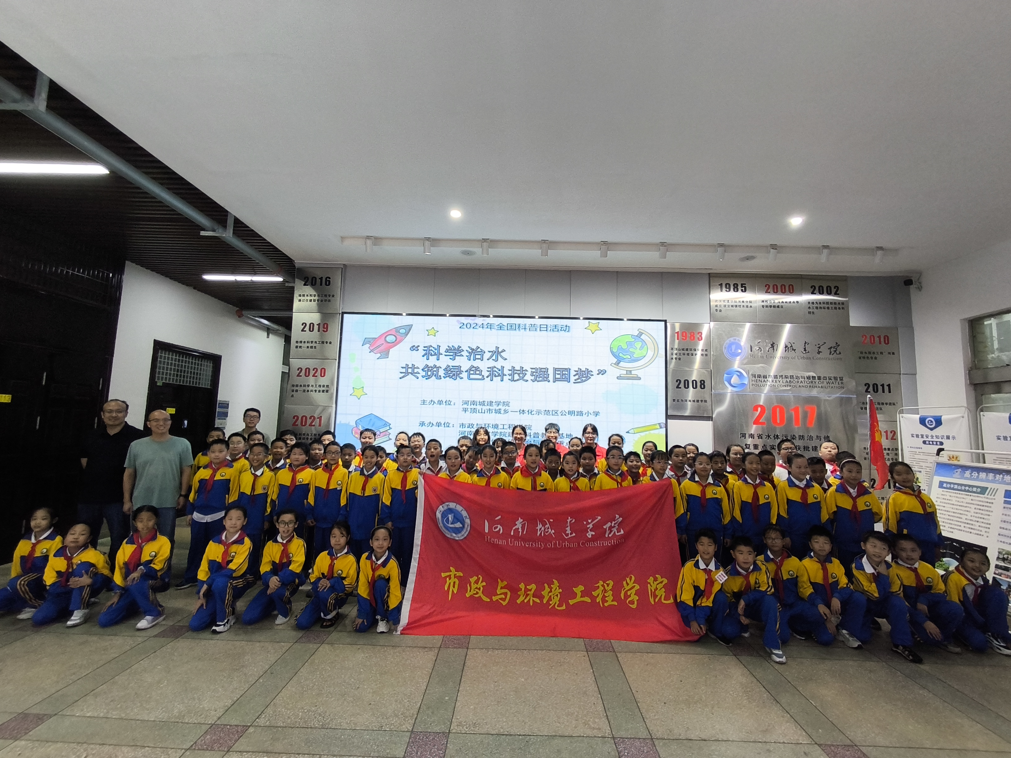 水是地球赖以生存和发展的珍贵资源,为了让更多孩子培养保护水环境、减少水污染以及安全用水的意识,更好地了解如何科学治水、科学用水。9月19日,以“科学治水,共筑绿色科技强国梦”为主题的科普活动在beats365唯一官方网站举行。本次活动由beats365唯一官方网站、平顶山市城乡一体化示范区公明路小学主办,beats365唯一官方网站建筑科普教育基地、beats365唯一官方网站、河南省水体污染防治与修复重点实验室共同承办。