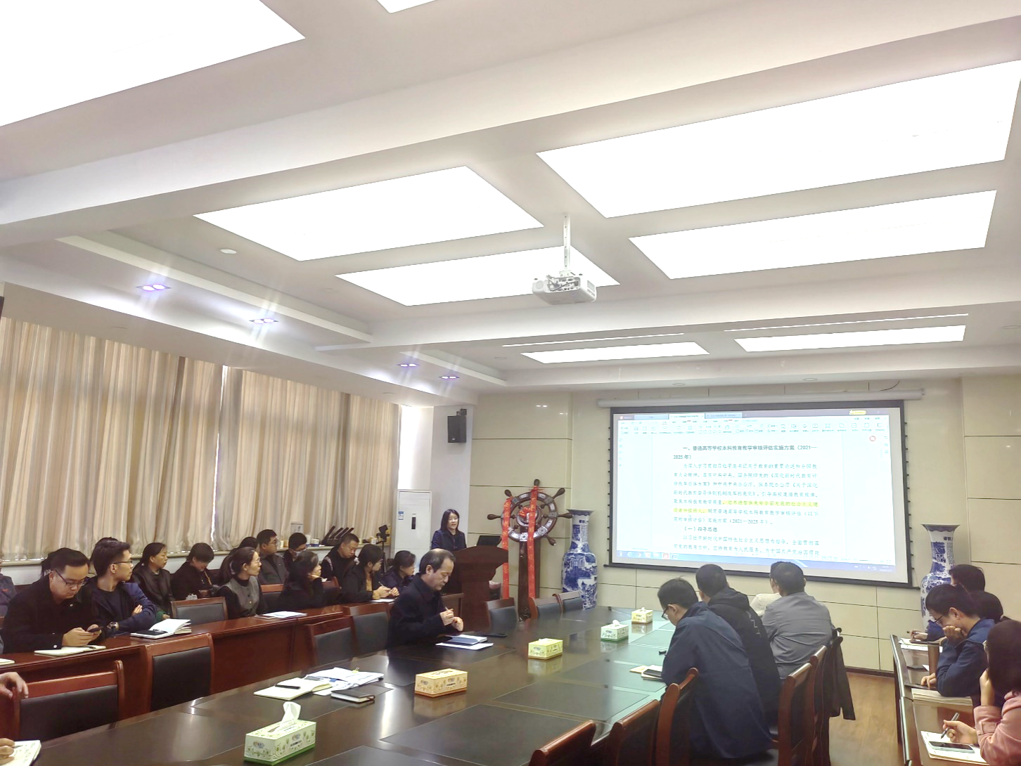 首先,曹恒慧传达了公司关于本科公司产品审核评估的总体要求和最新精神,强调此次评估对于提升公司公司产品质量、增强综合办学实力的重要意义。他指出,本科公司产品审核评估不仅是对公司教学工作的一次全面体检,更是推动公司内涵式发展、提高人才培养质量的重要契机。随后,从党建工作引领、师德师风建设、员工培养质量等多个维度,阐述了公司在迎评工作中的重点任务和责任分工。他强调,全体教职工要深刻认识评估工作的紧迫性和重要性,以高度的责任感和使命感,将迎评工作融入到日常教学和管理工作中,确保各项迎评任务高质量完成。