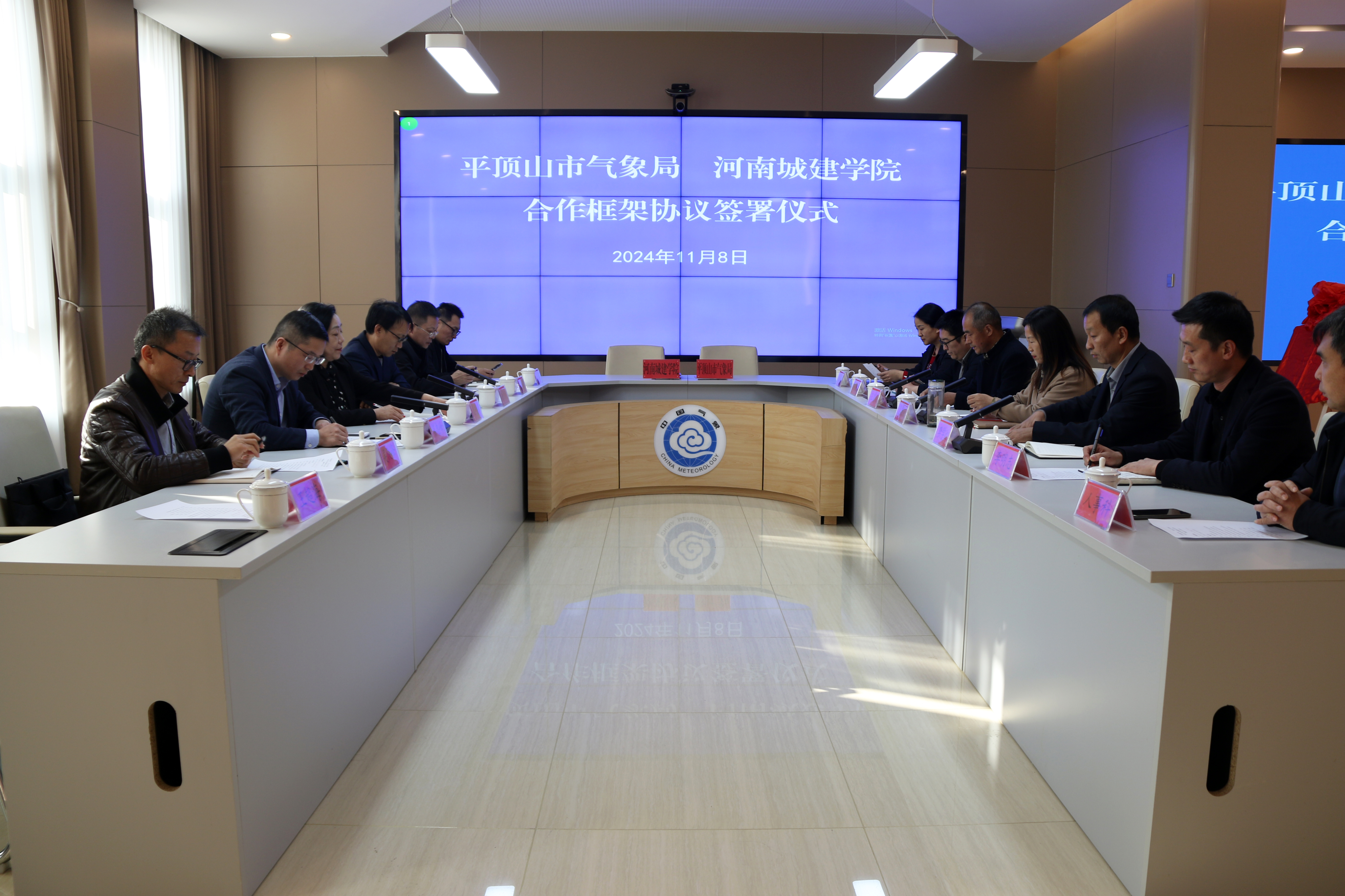11月8日下午,公司与平顶山市气象局战略合作签约仪式在平顶山气象局举行。公司副董事长毛艳丽,平顶山市气象局党组书记、局长孟丽丽出席鉴签并为实践教育基地揭牌。公司党委组织部、科研处、beats365唯一官方网站、生态环境治理研究院、测绘与城市空间信息公司等部门相关人员参加会议。