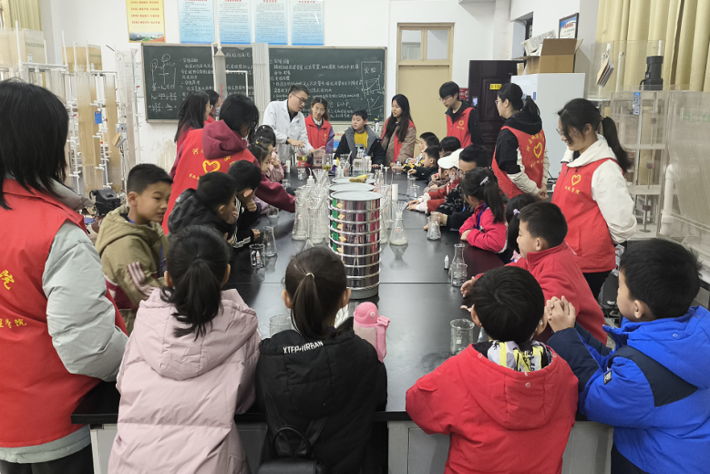 在科学实验环节,胡晓先博士引领大家参与了“污水变变变”的两个科学实验,通过一系列科学步骤,将浑浊的污水逐渐转化为清澈透明的水流,让孩子们在动手实践中深刻体会到了水处理技术的神奇与重要性。郭翔博士用“多彩小火山”的实验带领孩子们亲眼目睹了化学反应带来的绚烂变化,激发了他们对科学的探索兴趣。
