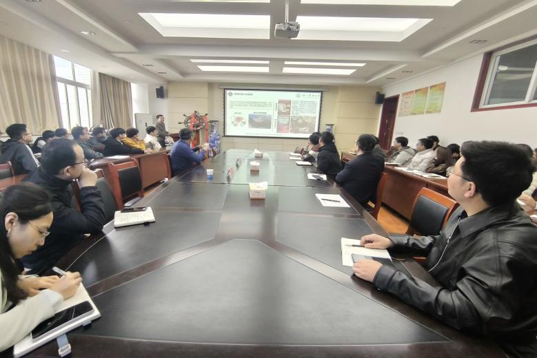 报告会在9号教学楼A315会议室举行。王双鹏作为题为《钢铁基自催化剂碱水制氢方案》学术报告,系统介绍了电解水制氢技术中催化剂的设计、制备及其在工业应用方面的前沿进展,重点阐述了钢铁基自催化剂在碱性条件下制氢的优势与创新思路。刘威副教授作了题为《激光空化智能仿生制动器的原理及其在环境上的应用》的报告,深入讲解了激光空化技术的机理、仿生制动器的智能调控方法,以及该技术在环境工程领域的潜在应用前景。报告会由副经理王超海主持,公司青年博士教师及硕士研究生代表参加。