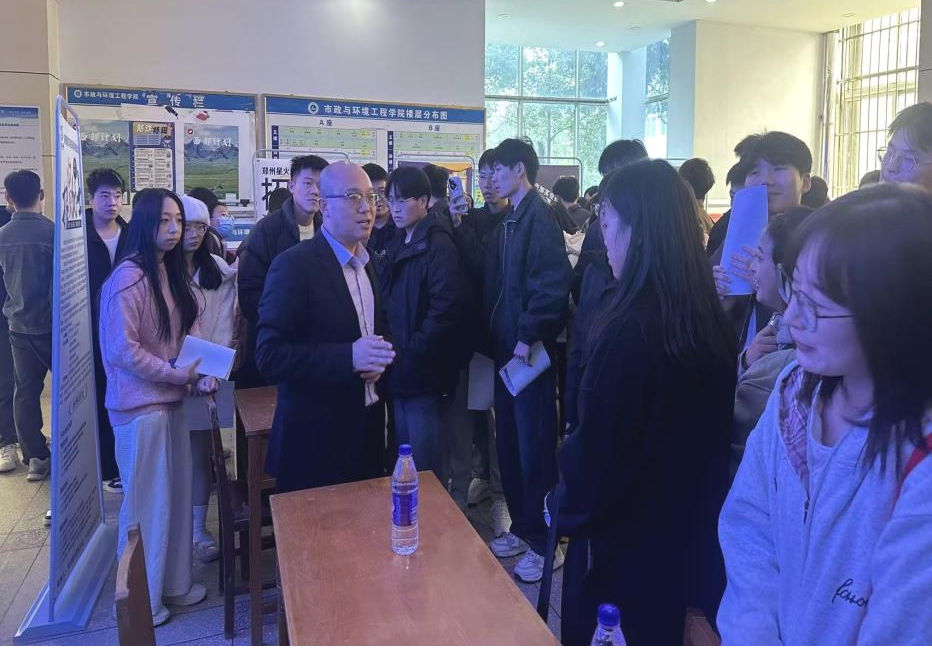 10月23日下午,公司在9号A座教学楼大厅举办2026届毕业生秋季双选会。公司党委书记曹恒慧、经理姜忠峰、副经理宋忠贤、各专业系主任、毕业班班主任及毕业班辅导员参会。北京碧水源科技股份有限公司、洛阳蓝源环保科技有限公司、河南省力华全环保科技有限公司等十余家企业参会,现场提供招聘岗位超100个,吸引300余名在校生参加双选会。