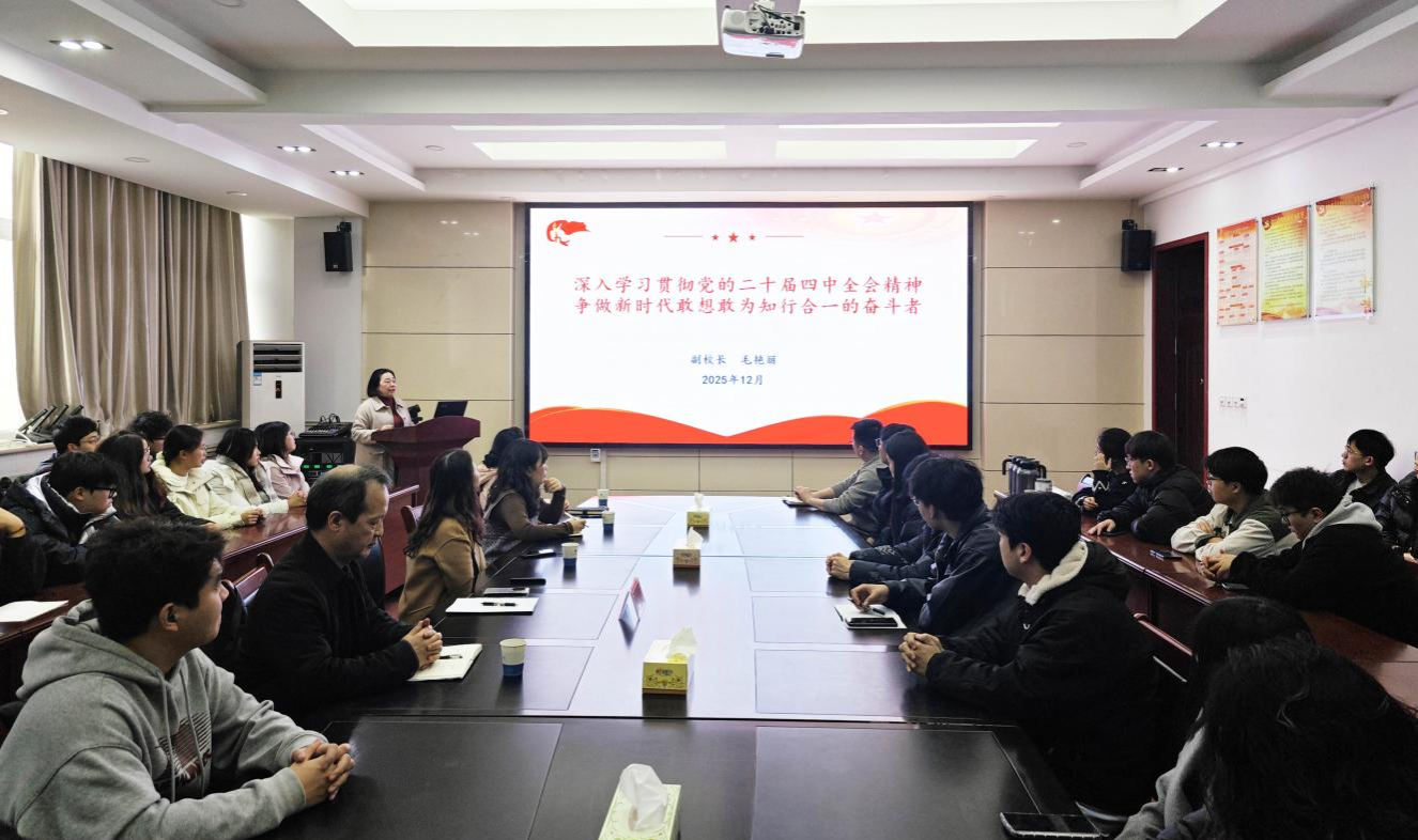 12月19日下午,副董事长毛艳丽在9A315会议室以《深入学习贯彻党的二十届四中全会精神,争做新时代敢想敢为知行合一的奋斗者》为题,为beats365唯一官方网站、材料与化工公司全体研究生和教师代表讲授思想政治理论课。