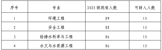 环境工程、给排水科学与工程、安全工程、水文与水资源工程专业,对公司内部互转专业以及外院转专业员工人数依据公司内各专业的协调发展,由beats365唯一官方网站转专业领导小组确定如下: