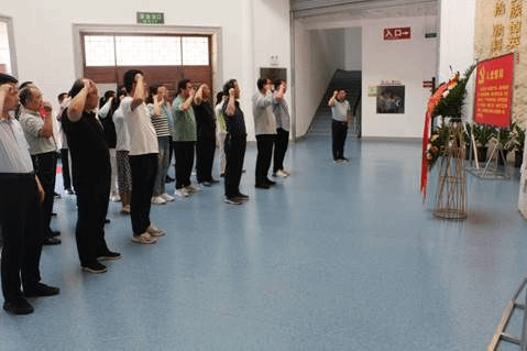 在南阳镇平彭雪枫纪念馆,参训教师肃立向革命先烈敬献花篮,怀着无比崇敬的心情向革命先烈鞠躬致敬,寄托对革命先烈的敬意与哀思。全体党员在雕塑前面对党旗庄严宣誓,重温了入党誓词。在讲解员带领下,观看纪念馆内陈列的彭雪枫将军的照片、文献、实物等历史资料、历史照片,一件件珍贵的文物无声地讲述着往昔峥嵘的岁月,一张张旧照片再现了彭雪枫将军短暂而辉煌的一生。