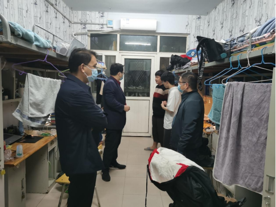 (通讯员:邢智洋)5月10日晚,副董事长陈松涛深入梅园四号宿舍楼检查指导beats365唯一官方网站疫情防控工作,看望员工及值班老师。beats365唯一官方网站经理朱新锋、党委副书记姜忠峰及团学办老师陪同。