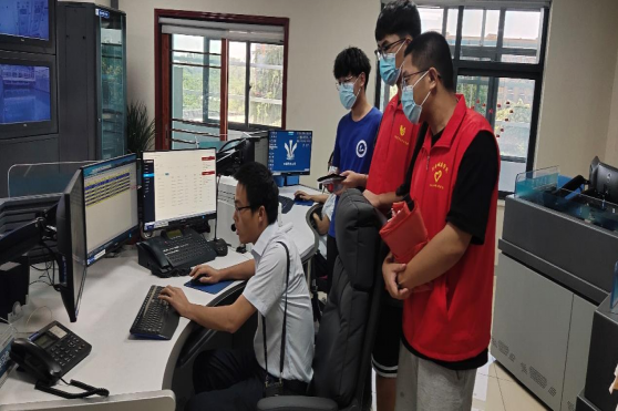 在南水北调中线干线宝丰管理处,同学们认真观看南水北调中线工程宣传片,深刻认识到南水北调工程是迄今为止人类规划规模最大的水利工程,是实现我国水资源南北调配、东西互济目标的民生工程,对缓解沿线省市用水紧张、促进经济社会发展和改善生态环境具有重大意义。同学们参观中线工程宝丰段中控室、应河倒虹吸工程、水质监控平台,现场观摩防汛演练、参与沿线安全巡检,聆听管理人员讲解南水北调从设想提出到设计规划、工程建设、通水运行、提质改造等过程中涌现的感人事迹,被老一辈建设者们的艰苦奋斗精神和新时期党员干部及移民顽强拼搏、敢于担当、无私奉献的精神深深感动。