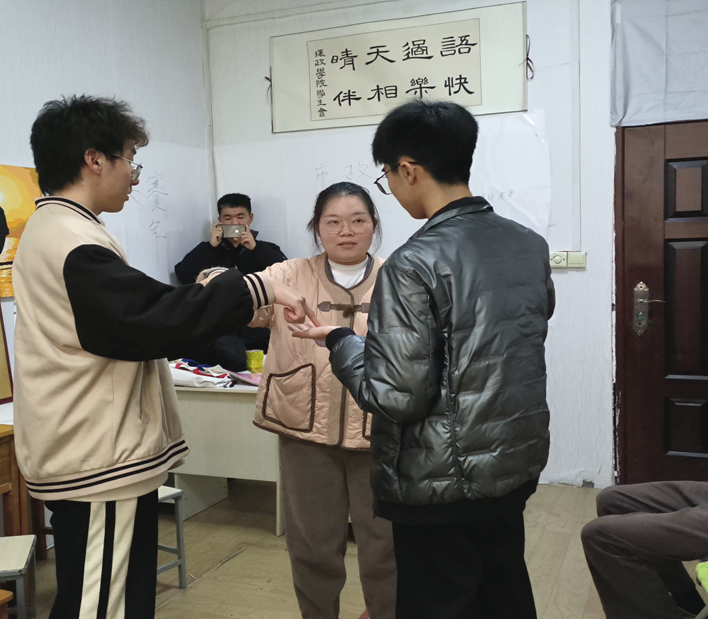 培训会上,王老师从团体辅导的优势、团体与个体辅导的区别、团体辅导的基本流程、设计方案、注意事项及如何成为一个合格的团辅组织者和实施者等方面进行系统的讲解。团体辅导的整体结构共分为热身与破冰、团队建设、信任与沟通、主题活动、引导实践五个单元。王老师组织心理委员进行现场演练,模拟团辅活动实施过程,预设各种突发情景,针对性地给出解决方案,详细叮嘱注意事项。