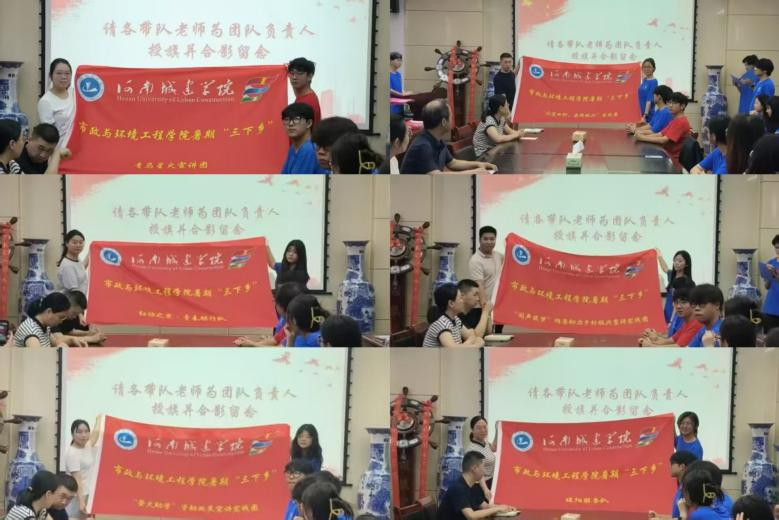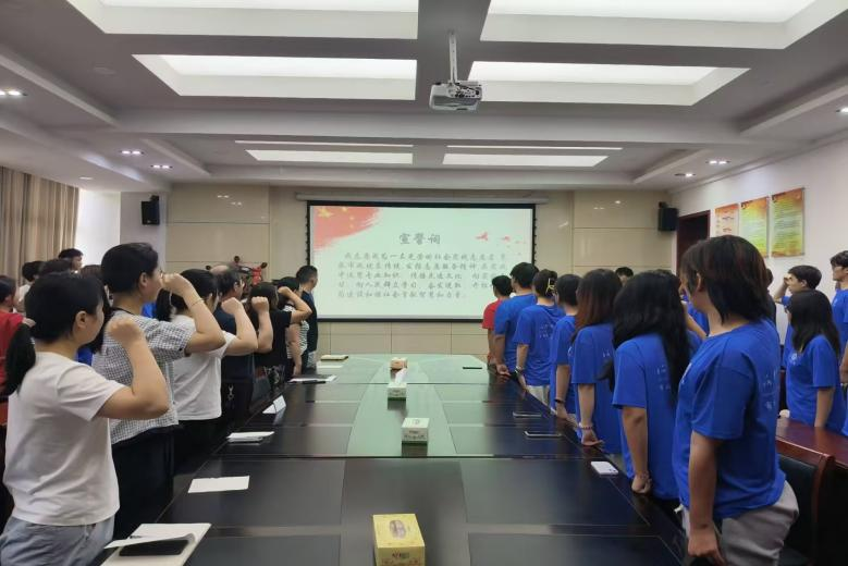 公司青年志愿者代表于缘基带领全体员工宣誓,指导老师为各团队授旗并合影留念。