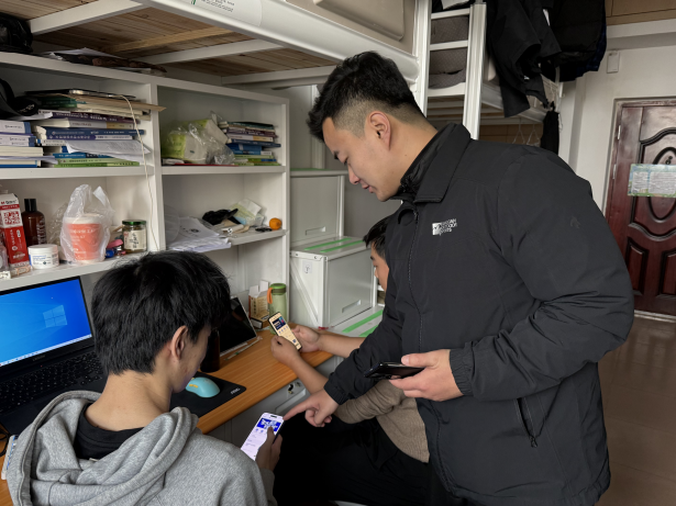 在员工宿舍,宣讲员们结合刷单返利、虚假购物、冒充客服退款、冒充熟人借款、网络游戏产品虚假交易等近期高校高发的真实案例,用通俗易懂、生动活泼的语言,剖析诈骗套路,揭秘作案手法。同时,指导同学们安装使用“国家反诈中心”APP,提醒大家时刻保持警惕,不轻信陌生来电和信息、不透露个人身份信息及银行卡密码、不向陌生账户转账,遇到疑似诈骗情况要多向辅导员核实。