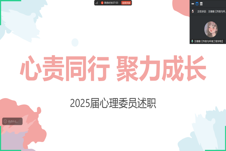 为进一步夯实公司心理健康教育工作根基,完善“校-院-班-寝”四级心理防护体系,切实发挥心理委员朋辈帮扶核心作用,掌握工作方法,提升工作成效,1月27日,公司以腾讯会议形式召开2025年度心理委员述职会议。公司党委副书记田永果、辅导员王璐璐及各班心理委员参加本次会议。