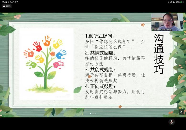 为深化家校联动、完善协同育人机制,营造和谐向上的家庭氛围,2月4日,公司以腾讯会议形式开展“家校同心,巧手筑家” 家校共育线上手工嘉年华活动,全体辅导员及各年级百余名员工、家长共同参与,以指尖创意凝聚家校温情,以趣味互动共促成长同行。本次活动由公司 “政好愈见”心理辅导站王璐璐老师担任主持。